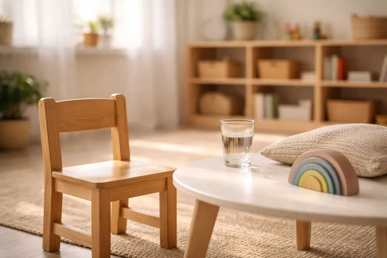 In erreichbarer Nähe bleiben, ohne Interaktion einzufordern. Keine Fragen stellen. Keine Aufforderungen geben.